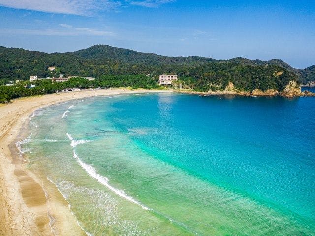 温暖な気候の伊豆半島最南端にある休暇村南伊豆。目の前には白砂のビーチ「弓ヶ浜」が広がります。屋上の展望足湯に浸かりながら四季の景色をお楽しみください。