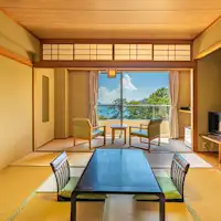 目の前に弓ヶ浜が広がる温泉リゾート。源泉掛け流しの壺湯が魅力