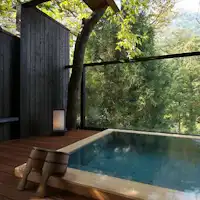 森の中の隠れ家のようなプライベート空間で、 お好みの音楽を楽しみながら、アロマロウリュウで汗を流し、四季折々の渓谷を眺めながらリクライニングスペースでクールダウン。 貸切ならではの自由な空間で、素敵なサウナタイムをお楽しみください。 ■設備・サービス ・4~5人が入れる広々スペース。 ・アロマセルフロウリュ可。 ・オーバーヘッドシャワー付。 ■料金(※税込) 50分 3,300円 115分 6,600円