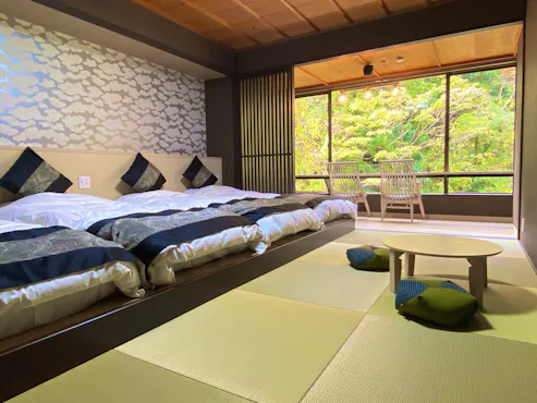 渓谷を望む貸切露天風呂と、文化体験を楽しむ宿