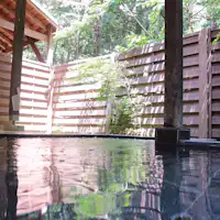 富士山麓の清々しい空気と、当館の周囲を囲む森の空気に包まれた開放的な露天風呂は、24時間いつでも部屋毎に貸切でご利用いただくことが出来ます。