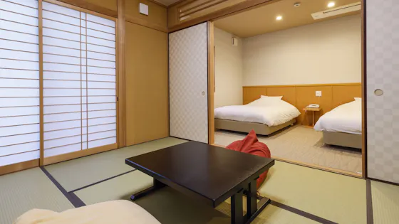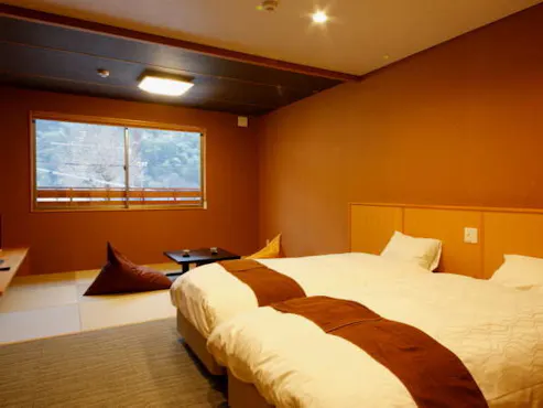【当旅館における新型コロナウィルス感染症等の感染拡大予防対策について】 当館では6月5日より「宿泊施設における新型コロナウィルス対応ガイドライン」に従いまして、お客様・ホテ ルスタッフの健康と安全を考慮し、全スタッフで以下の予防策に取り組みながら新しい対策にて営業致します。 つきましては、従来通りにできかねるサービスもあり、お客様には大変心苦しい所存でございますが、どうぞご 理解とご協力のほどよろしくお願い致します。 【すべてのお客様へのお願い】 1.息苦しさや倦怠感、咳・咽頭痛・発熱がある方は、ご旅行をお控えください。 2.体調不良のお客様には、ご予約があってもご宿泊をお断りする場合がございます。 3.咳エチケットとして、入館時に必ずマスクの着用をお願い致します。 4.館内履き・下駄をはかれる際は、必ず足袋ソックスの着用をお願い致します。(足袋ソックスは一人一枚ご用 意しております) 【館内共通】 1.全スタッフの体調管理チェック及び手洗い・消毒を徹底致します。 2.感染拡大防止のため、スタッフがマスクを着用致します。 3.館内各所にアルコール消毒液を各所設置しております。 4.お客様の手に触れる箇所の徹底的な消毒及び除菌清掃を行います。 5.館内及びお食事会場の喚起を徹底致します。 6.共用スペースのソーシャルディスタンスの確保のためテーブル椅子を減らしております。 7通常の施設サービスについて予告なく一部休止する場合がございますのでご了承ください。 【チェックイン】 1.電車でお越しの場合、6月中は組合循環バスを休止しております。駅から徒歩でお越しくださいます様お願致します。 2.お車でお越しのお客様へ、チェックインが混み合う場合はお車でお待ちして頂く場合がございます。 3.マスクを着用されてない方につきましては、入館をお断りさせて頂く場合がございます。 4.入館時の手指の消毒にご協力お願い致します。 5.館内・客室のご案内は、文章によるご案内となります。 【お食事処・提供】 1.お食事処への入室の際は手指の消毒のご協力をお願い致します。 2.個室のお食事処にスタッフが入る回数を極力減らします。(料理内容は従来通り) 【チェックアウト】 1.清算は各お部屋でお願いしております。チェックアウト時には、鍵の返却のみとします。 今後もガイドラインに従い、スタッフ、お客様の安心・安全を第一に予防策を随時更新いたします。 お客様のご理解、ご協力をよろしくお願い致します。