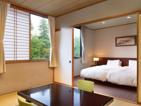 山中出身の和の鉄人・道場六三郎氏監修の特別な甘味が味わえます。 スイーツは「冷製抹茶しるこ」「川床ロール」よりお好きな甘味をお選びいただけます。