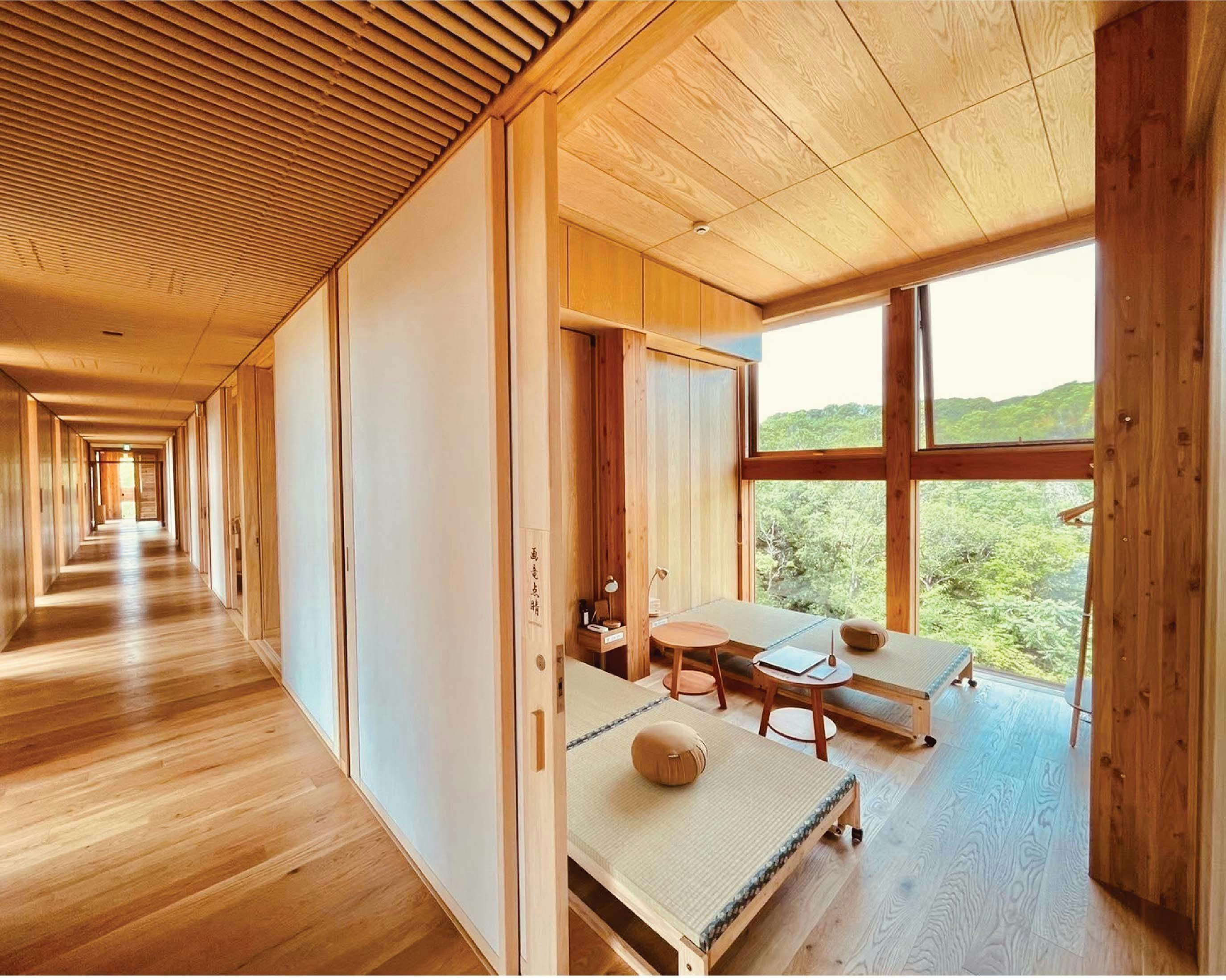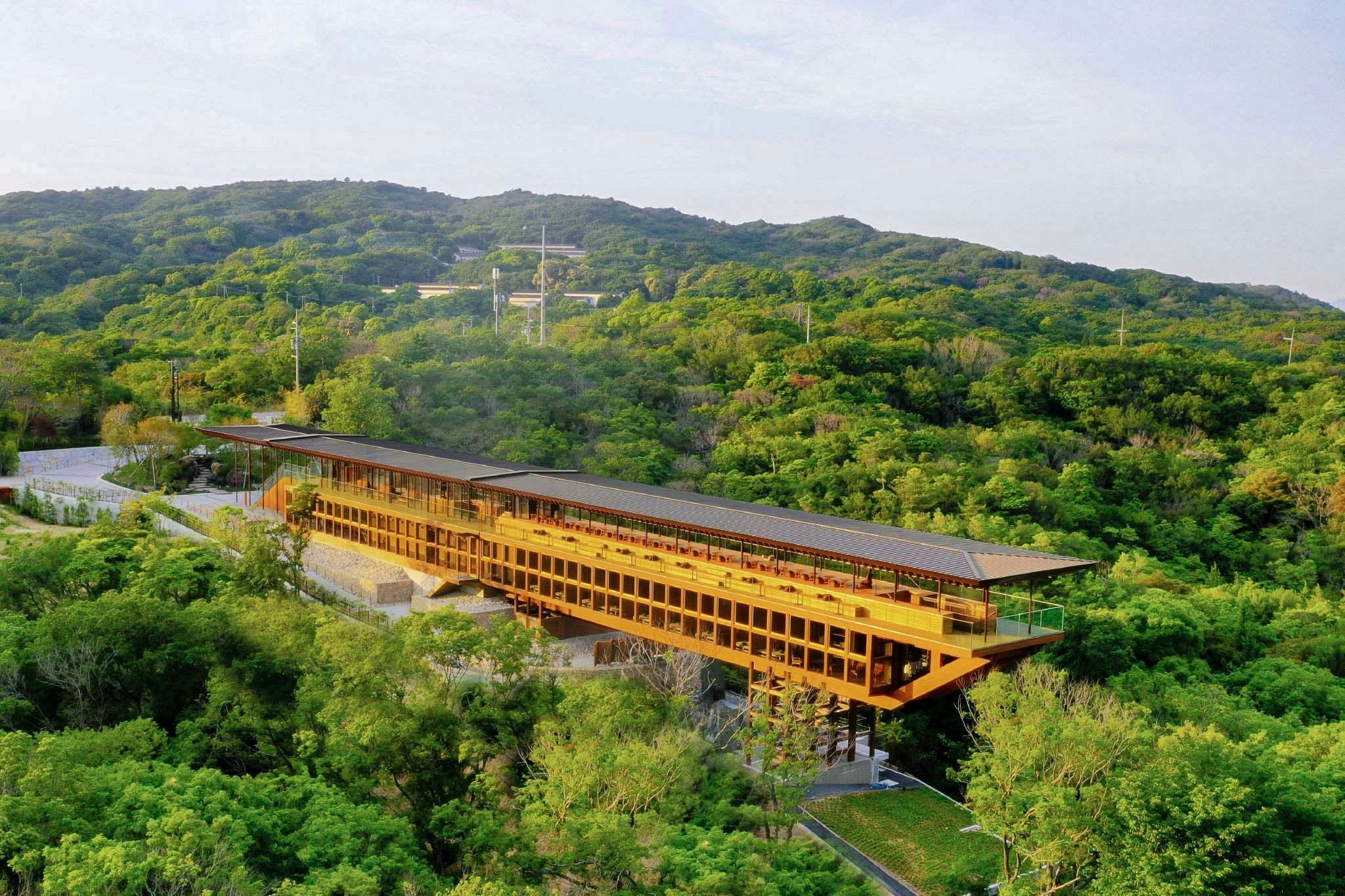 燦燦とふりそそぐ陽光、澄んだ空気、雄大な緑、夜空に輝く星たち。 360度に広がる淡路島の四季折々の景色と調和する様に佇む全長100mのウッドデッキを擁する坂茂氏による唯一無二の木造建築、「禅坊 靖寧」。