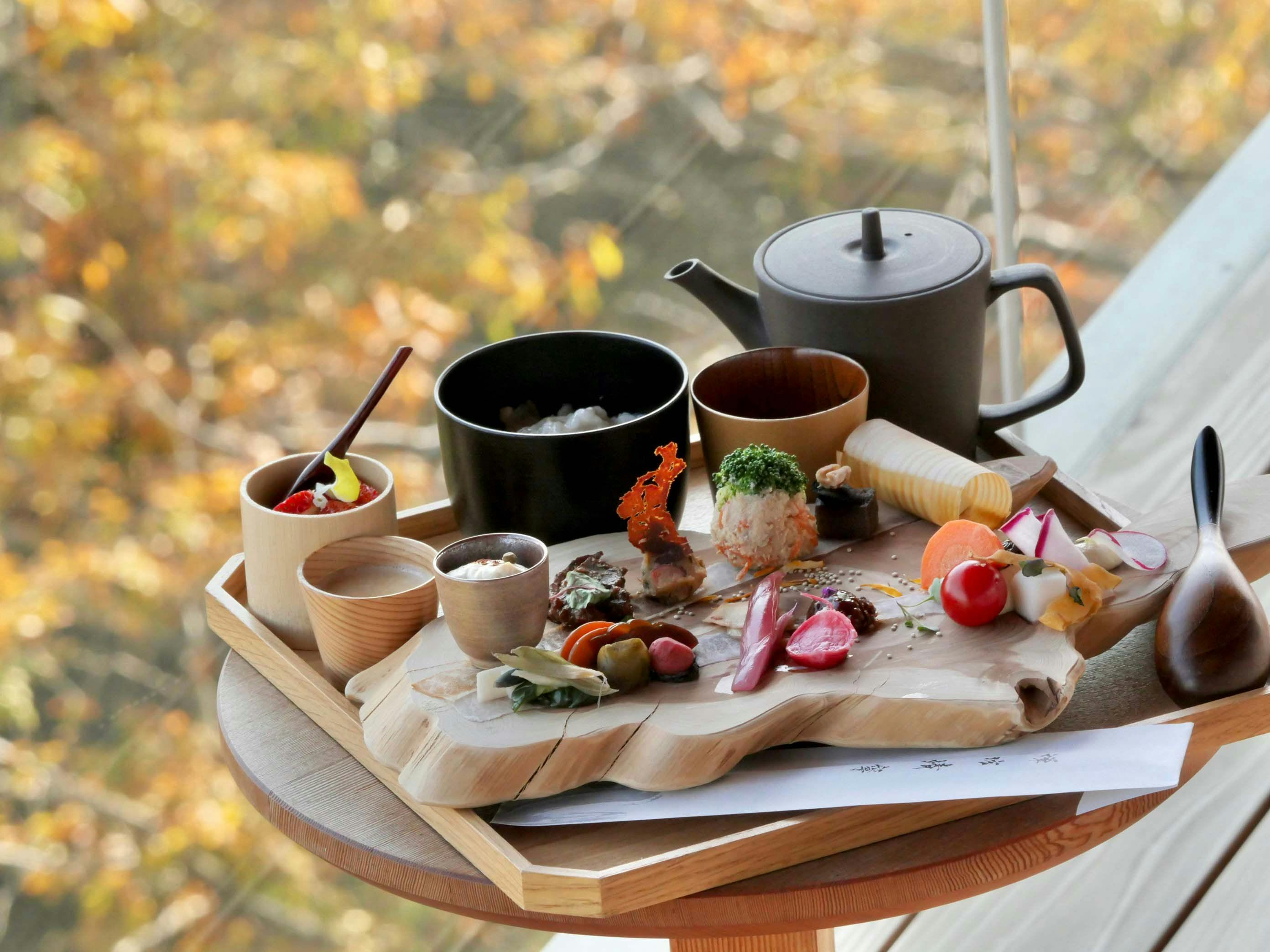 発酵醸造料理人 伏木暢顕シェフ監修。 日本の食文化「発酵」を取り入れ、動物性食品・油・小麦粉・白砂糖を一切使用せず作られた料理。 禅の心得をもとに、淡路島の四季から木をいただく「禅坊料理」をご用意しております。