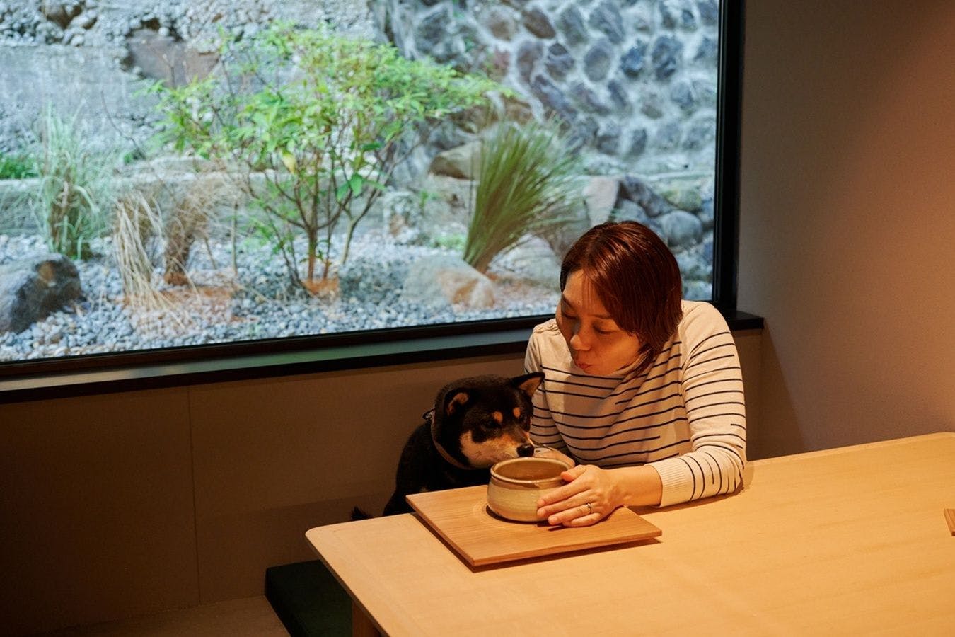 お風呂のときも、食事のときも、愛犬と片時も離れず、ずっと一緒に過ごせます。 ミニキッチン付きの客室もありますので、日田・天ヶ瀬の豊かな自然に触れながら、お家のようにくつろぐことのできる日常空間をお楽しみいただけます。