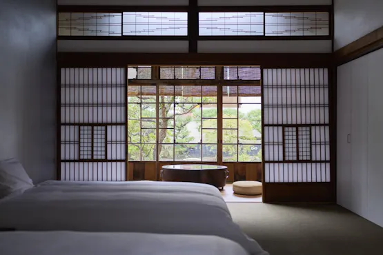 1987年に廃業した「針惣旅館」が2024年10月にレストランとパティスリーも備えた複合施設「HARISO」として再生。 当時10部屋以上あった客室の中でも、昭和の文化人たちにいちばん愛されたお部屋を限定1組の宿に。時代の面影をそのままに、現代的なアクセントを加えたお部屋となっております。ここでは皆様が過ごしている日常のさらにその延長のように、お好きなカタチでお寛ぎください。