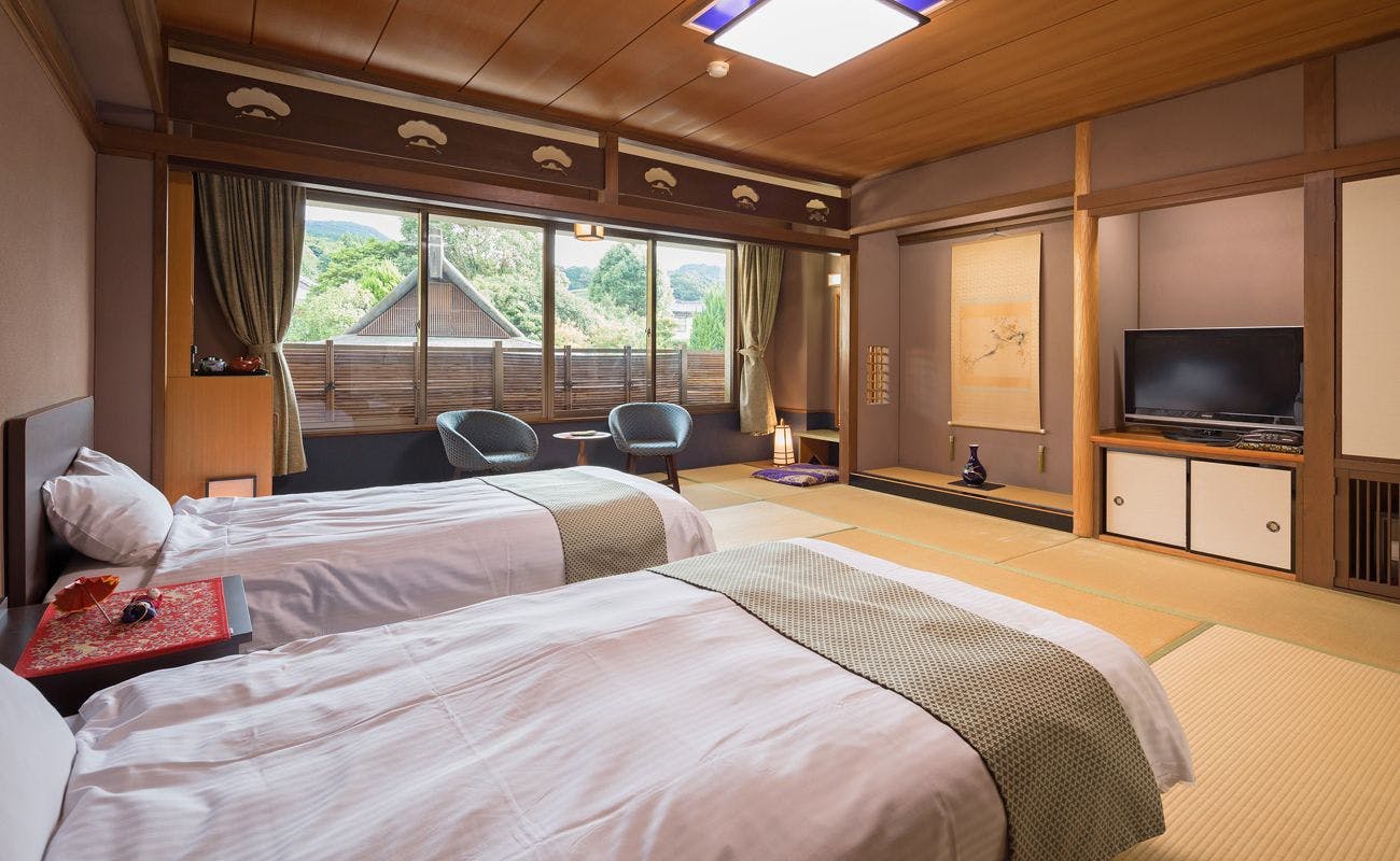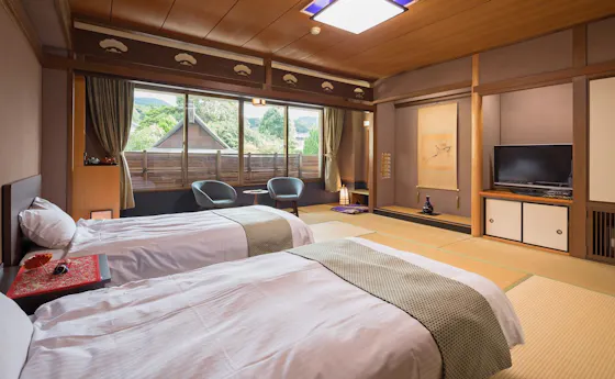 お部屋は多彩な選択肢をご用意。全室専用露天風呂付きの「山茶亭」では、プライベートな空間で湯浴みを堪能いただけます。また、数寄屋造りの離れ「翠月」では、静寂の中でお茶の心を感じるひとときをお過ごしいただけます。お食事では、嬉野茶をふんだんに取り入れた茶会席料理をご提供。食前酒から甘味まで、地元ならではの風味豊かな料理が旅の彩りを添えます。地元食材とお茶が織りなす味わいをぜひご堪能ください。嬉野川沿いの立地は、温泉街の風情と自然の静けさを感じられる絶好のロケーション。滞在中は心落ち着くひとときをお過ごしいただけます。嬉野温泉インターから車で10分、嬉野バスセンターからは無料送迎もご用意(要予約)。観光にもビジネスにも便利なアクセスで、初めてのお客様にも安心してご利用いただけます。嬉野茶と温泉が奏でる贅沢な癒しの空間で、心ほどける特別な滞在をお楽しみください。