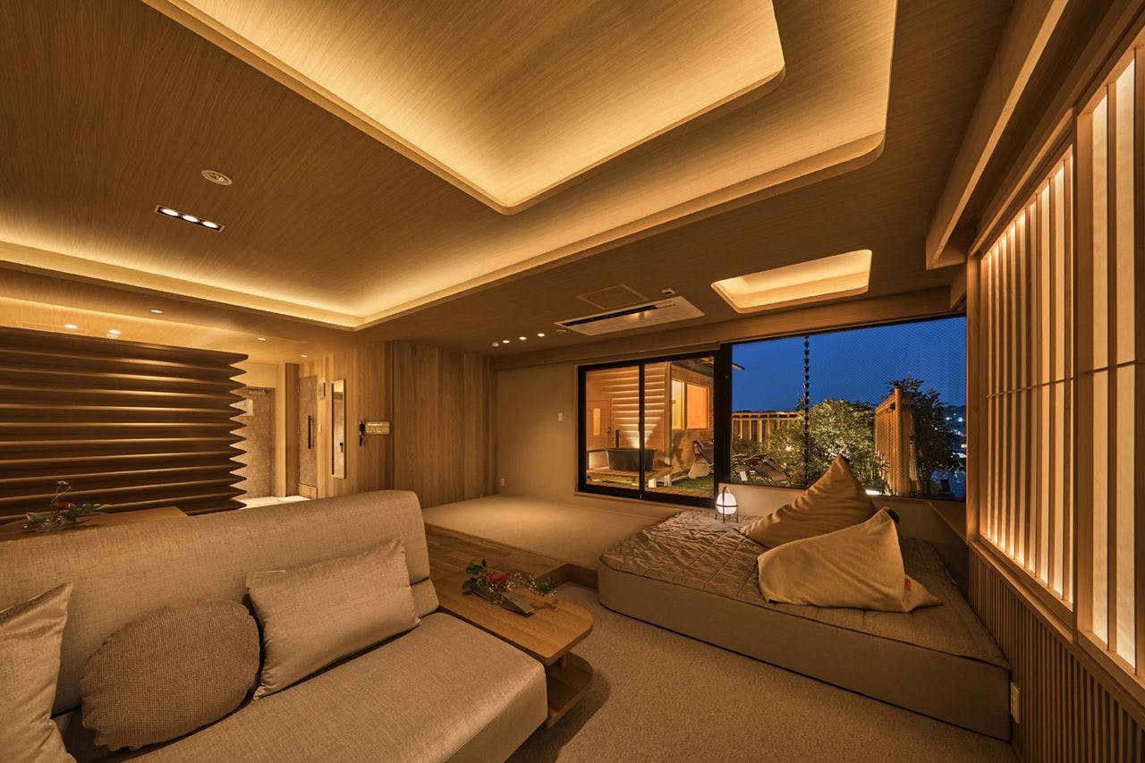 露天風呂から眺める奈良の絶景は、まるで一枚の絵画のよう。 東大寺や若草山を正面に望みながら、湯に浸かる贅沢な時間を。 それぞれのコンセプトに基づき、一流の職人が手がけた上質な空間で、特別なひとときをゆったりとお過ごしください。