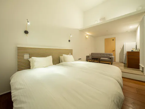 軽井沢駅から車20分、御代田駅から車6分。 乾燥した空気と晴天に恵まれた静かな立地で、 雄大な浅間山を眺められる北欧スタイルのシンプルステイ。 軽井沢の喧騒を少し離れ、乾燥した空気と晴天率の高さが魅力の立地。 北欧家具と野菜がおいしい食事で、ココロもカラダもリフレッシュ。 17時IN - 13時OUT。チェックインは遅く、滞在は深く。 眠るだけじゃもったいない。浅間山と雄大な自然を抱くひとときを。