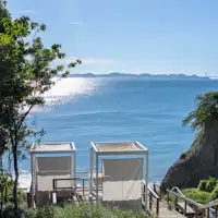 全5棟の客室には、空を仰ぐ露天ジャグジーと静寂に揺らめく焚き火台を完備。 自然の中の“ととのう”サウナで心身を優しく解き放した後は、薪のはぜる音に耳を澄ませ、満天の星を仰ぐ。 ただ自然に身を委ね心身がほどけていく贅沢な時間は、日常の喧騒を忘れさせてくれる最高のリトリート。 小鳥のさえずりで目覚める朝には、地産地消の滋味あふれる朝食を味わう贅沢な時間を。 山道を進み絶景に出会えるトレッキングや海辺でのんびり釣りを楽しむアクティブな遊びと、何もしない贅沢のどちらも叶う大人のための隠れ家です。
