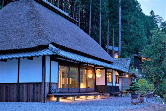 日本の里100選にも選ばれた棚田の美しい里奈良県深野にある絶景を楽しめる茅葺古民家再生の宿。囲炉裏部屋から、室生赤目青山国定公園を望む「大人の隠れ屋敷宿」。近隣には修験道山伏や忍者修行地の名勝赤目四十八滝や女人高野国宝室生寺があります。