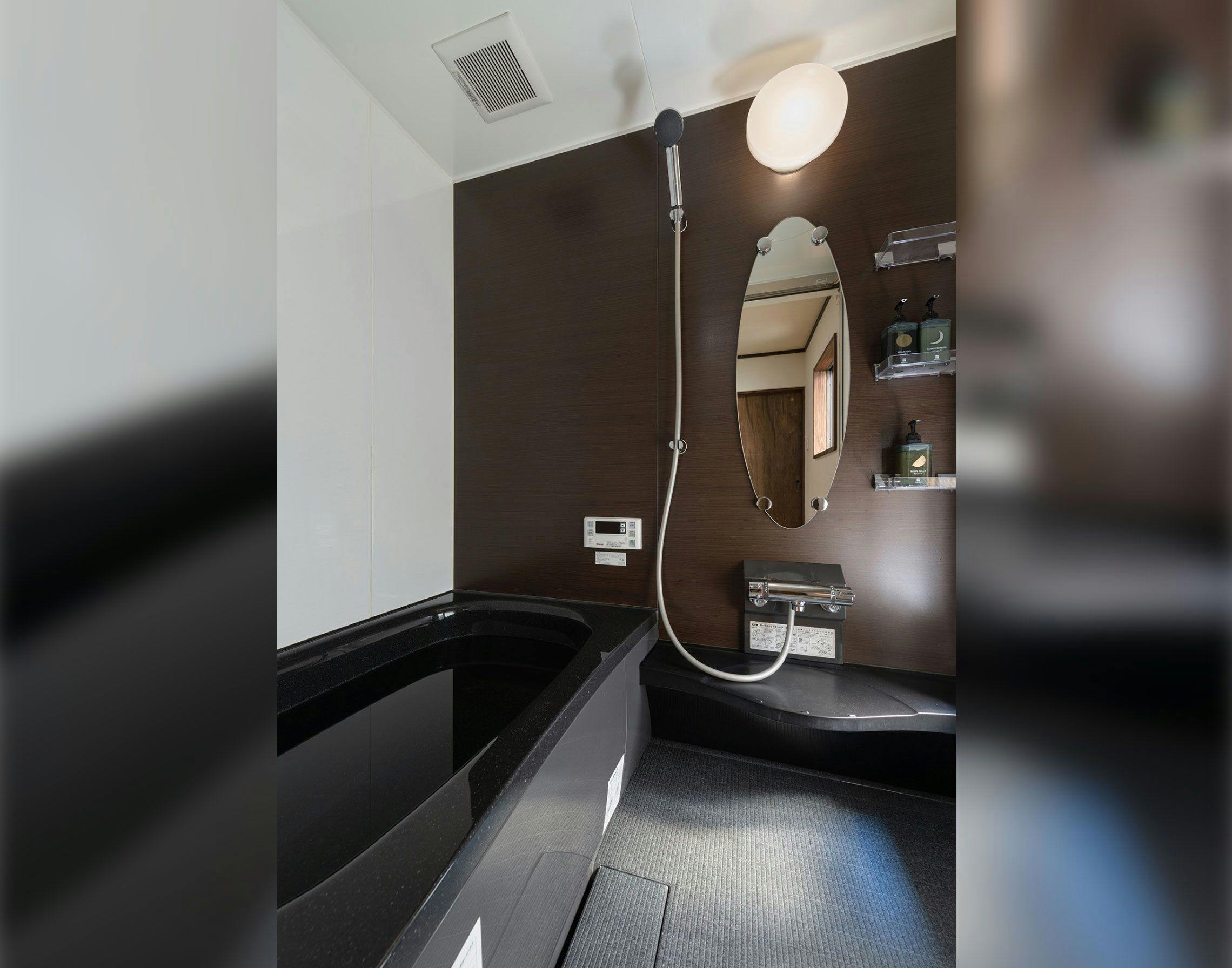 坪庭を眺めながら入浴できる浴室や、京町家特有の吹き抜け「火袋(ひぶくろ)」を残したキッチンなど水回りは使いやすく一新。IHコンロ・調理器具・食器類を備え、広々としたキッチンでは自炊が可能です。「今熊野商店街」の食材でお料理をしたり、テイクアウトしたものを町家で楽しまれるのも旅の醍醐味。