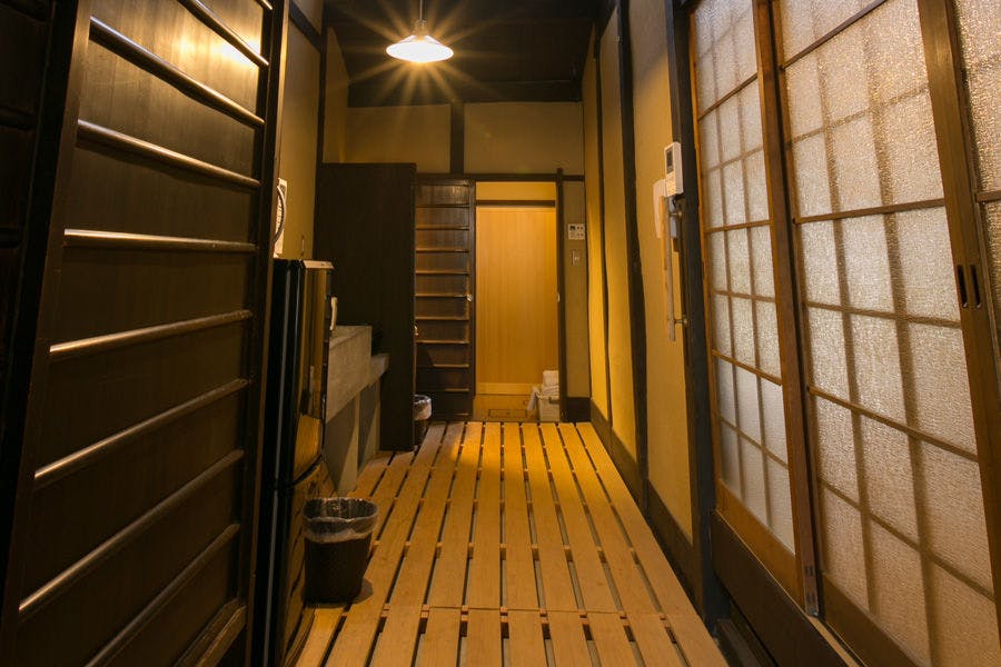 通り庭もそのままに、火袋も残した昔なつかしい京町家です。 五右衛門風呂につかりながら京都の歴史にはせてみてください。 この場所には、維新の頃に坂本龍馬が通っていたといわれる郡山所司代がありました。