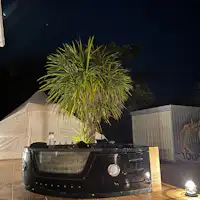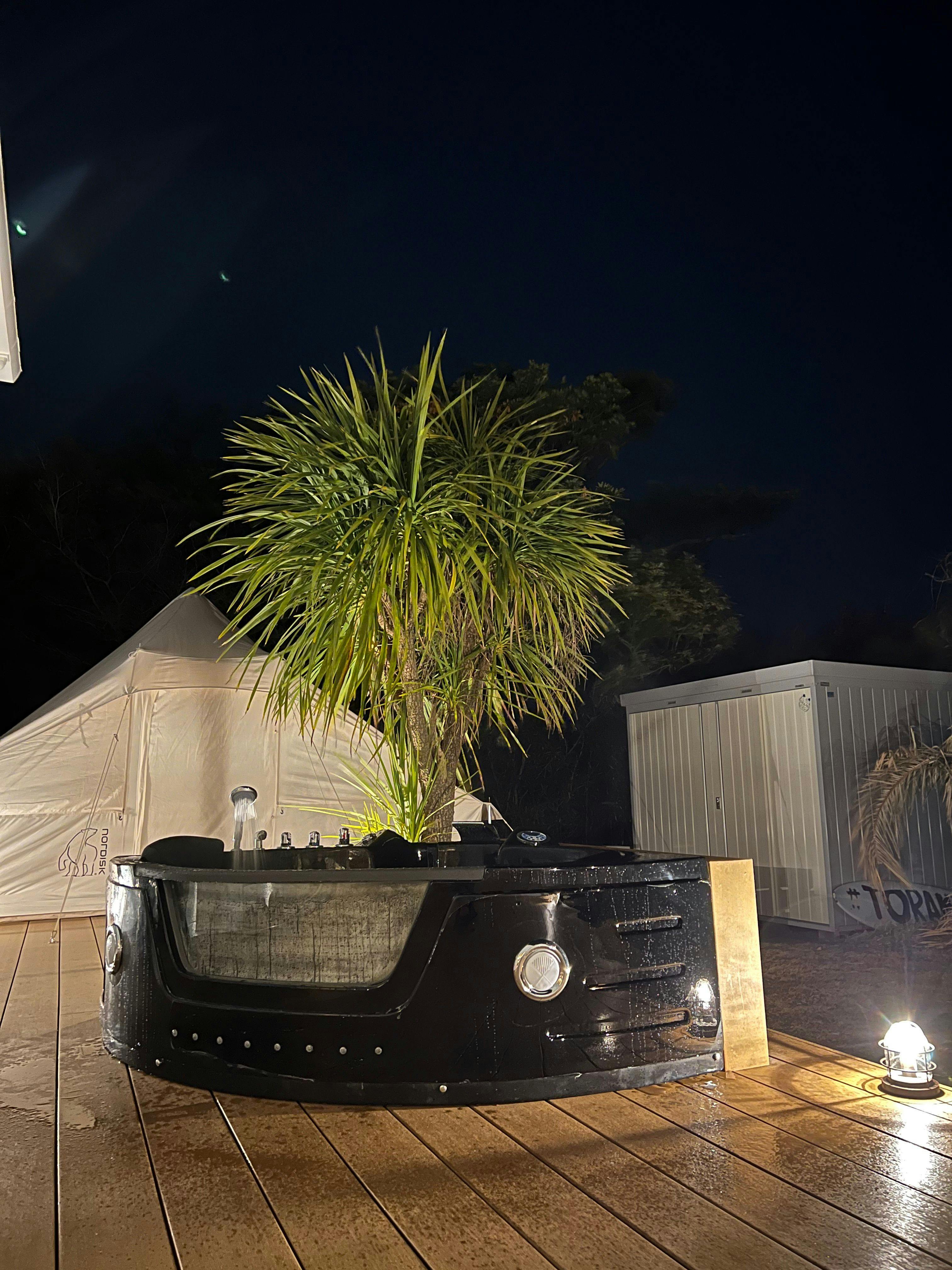 外用のテーブル・チェアもございます。 海まで徒歩3分ならではの静かな場所で星空の眺めを楽しむこともできます。 星空ジャグジーで空を見上げることも、 広いデッキにヨガマットで寝転がりながら見上げても 関東屈指の星がキレイなエリアなので、天気が良ければ天の川も。