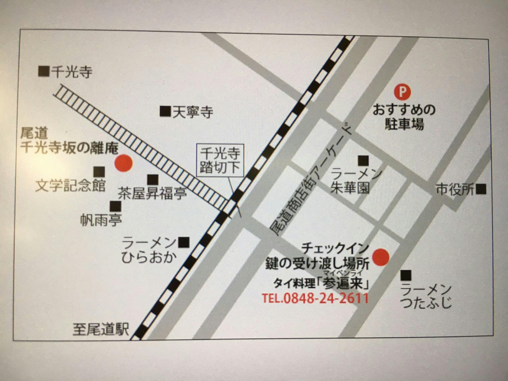 ■宿へのアクセス■ 【電車の場合】 ・関西方面から 1.新幹線を利用、新大阪駅から福山駅経由(こだまに乗り換え)新尾道駅から約2km、バスかタクシーを利用して千光寺踏切下信号で下車徒歩10分 2.新幹線を利用し福山駅にて在来線に乗り換え尾道駅下車徒歩15分 ・九州方面から 1.新幹線を利用 広島駅経由(こだまに乗り換え)新尾道駅から2km、 バスかタクシーを利用して千光寺踏切下信号で下車徒歩10分 2.新幹線を利用し広島駅にて在来線に乗り換え尾道駅下車徒歩15分 【車の場合】 ・関西方面から 山陽道路福山西ICで2号線バイパス尾道方面へ、向峠交差点で県道363線左折尾道市街方面 ・九州方面から 山陽道路尾道ICで下り国道184号線尾道駅方面へ ※駐車場は「広島県尾道市久保1丁目周辺」または「千光寺踏切下周辺」のコインパーキングをご利用ください。