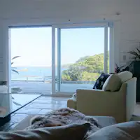 海を望むサンライズと、岩場をオレンジ色に染めるサンセットの美しい風景。 全ての部屋から海を眺望出来る、リゾート感溢れる欧米スタイルの一棟貸し。 海の青と、別邸の白亜のコントラストが美しく映える楽園で忘れられぬひと時をお過ごしください。 下田白浜までも歩いて行ける距離なので、駐車場が混みあう夏の白浜へも車をおいてワンちゃんとご一緒にお出かけください。 ご夕食は愛犬も走り回れる73平方メートルの大きなテラスで、潮の香りを感じながらのBBQをお楽しみください。 ご朝食はパンや生ハムなどのモーニングプレート洋食セットご用意しておりますので、お好きな時間にお好きなように調理して自分だけのブランチをお楽しみ頂けます。 大きなお肉をまるまる焼けるほどの大きなオーブンや、調理器具、電子レンジなどお料理出来る備品も揃っておりますので、素泊まりでもご自身で作るお食事をお楽しみいただけます。 四季の蔵や周辺観光に慣れたお得意様も、初めて伊豆にいらっしゃる方も、ご家族だけの贅沢空間で“ゆったりと流れる時間”を過ごされてはいかがでしょうか?