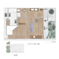 ― 月日は百代の過客にして、行かふ年も又旅人也。 ― 松尾芭蕉の「おくのほそ道」から付けられたつきひの家は、 その名のとおり時間を味わうにふさわしい町家です。 歴史を感じさせる町家建築の中には、外からは想像できない多層構造の空間が広がります。 元々防空壕だった半地下の層にはじまり、土間、庭に面した居間、一階、中二階、二階がシームレスにつながっていく各層で、思い思いにくつろぎ、自分らしい時間を過ごすことができます。