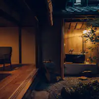 隣接した京町家造りの宿は、客人を心地よく受けとめて、 包みこんでくれる旅の拠点となります。 名所を訪れるのに便利な立地に、暑い夏も、厳しい冬も、快適に過ごせる住まいの性能を備えています。 随所に施された町家のあしらいが、心を落ち着かせてくれます。