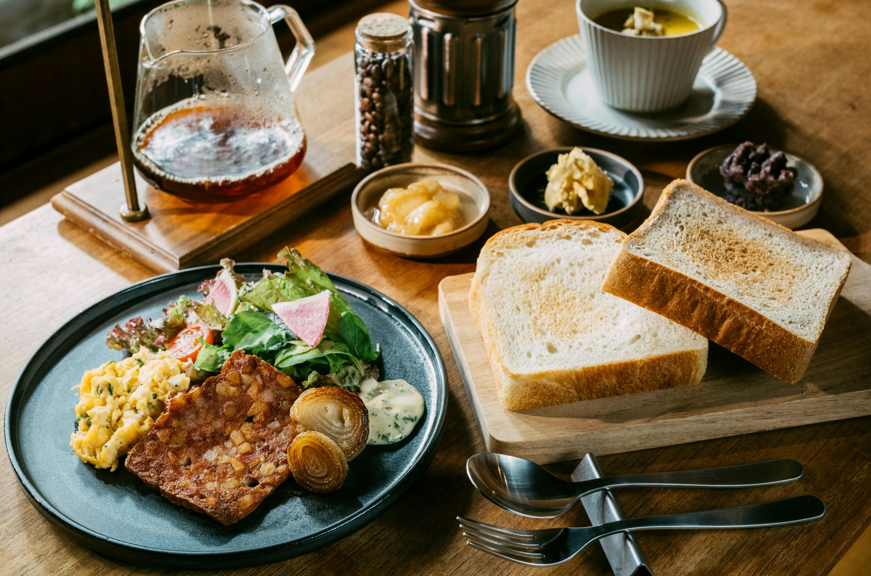 | 朝食 | 朝食をご希望のお客様には、京都五条 泉仙からお届けする京料理と小川珈琲×きょうの家 焼きたてパン朝食をご用意しております。 旬の京料理に炊きたての御飯。焼きたてのパンに淹れたてのコーヒー。 京都での一日は、そんな贅沢な時間からはじめてみてはいかがでしょうか。 詳細につきましては、「プランの紹介」をご確認ください。 |