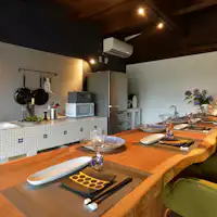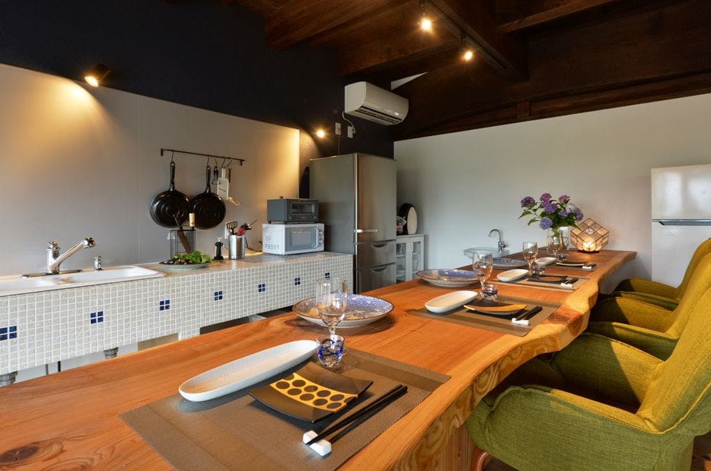 以下のような設備や特徴があります。 一棟貸切・キッチンあり・連泊中清掃サービスあり・洗濯機あり・近隣スーパーあり・駐車場あり・食事サービスあり・食料品の持込可・ペット可