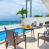 【2017年2月開業】自然豊かな沖縄県金武町の海岸に、誕生いたしました。サンライズを浴びながらテラスから広がる海を眺める抜群のオーシャンビュー、寝室は3室あり、グループ旅行にもおすすめです。