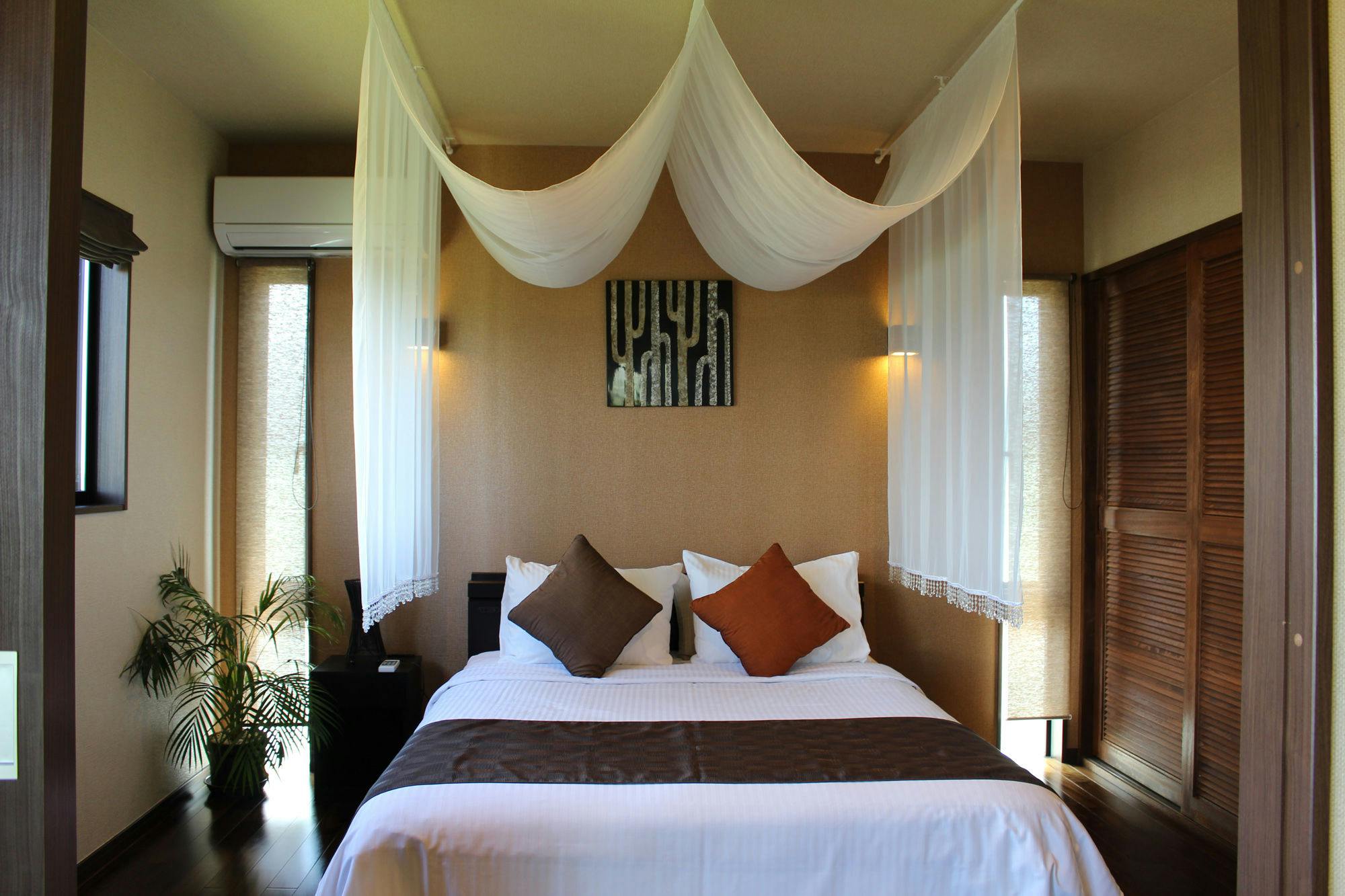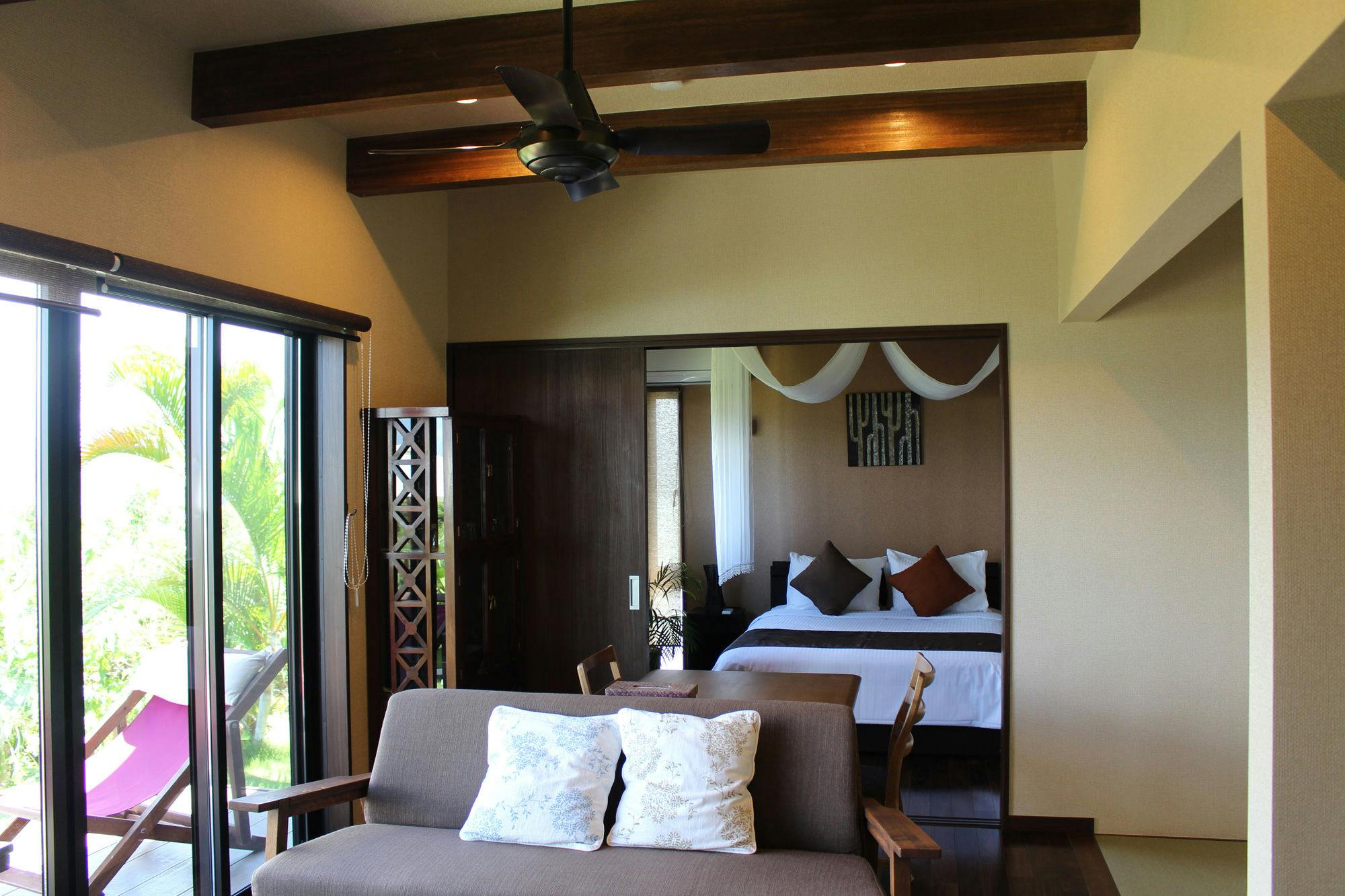 周囲7kmほどの小さな瀬底島。 瀬底大橋で繋がれた小さな元離島は、沖縄でも有数の美しさを誇る海に囲まれています。 ヴィラ「イジュのハナ」は、眼下に瀬底大橋と美しい海を一望できる丘に建っており、 汐風を感じながらプライベートリゾート気分で、安らぎのひとときをお過ごしいただけます。 美ら海水族館まで車で約10分、古宇利島まで車で約35分と北部の観光にも便利な立地です。 宿からは、マリンアクティビティで賑うアンチ浜ビーチまで徒歩10分・瀬底ビーチは車で5分で行けます。