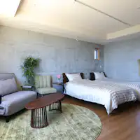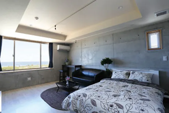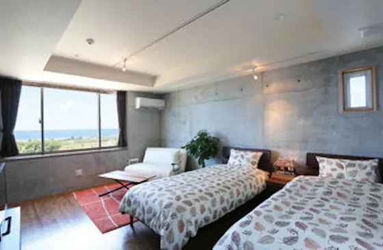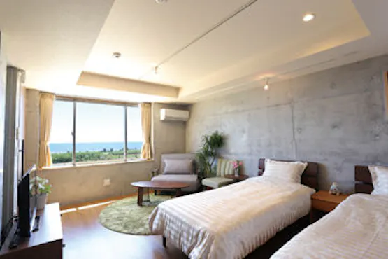 オーシャンビュー! 2017年9月、人気エリア読谷村に誕生したテラスハウスです。 全3室、それぞれ3階建ての一棟貸しのお部屋が併設されています。 お部屋は青、黄、赤の3タイプです。 お部屋からはサンセットを眺めることができます。