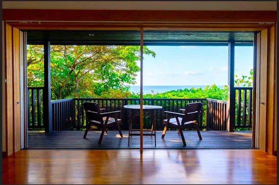隠れ家のように佇む、美景を擁したヴィラ ヴィラ さちばるはプライベート性を重視した独立型ヴィラで平屋2棟、2階建て1棟の3棟からなる宿です。全室海・星空を眺望する開放型居室空間。
