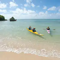 那覇から南城市新原ビーチ向けに車で40分 人気のカフェやレストラン、海や山も目の前。 遊び方はお客様次第