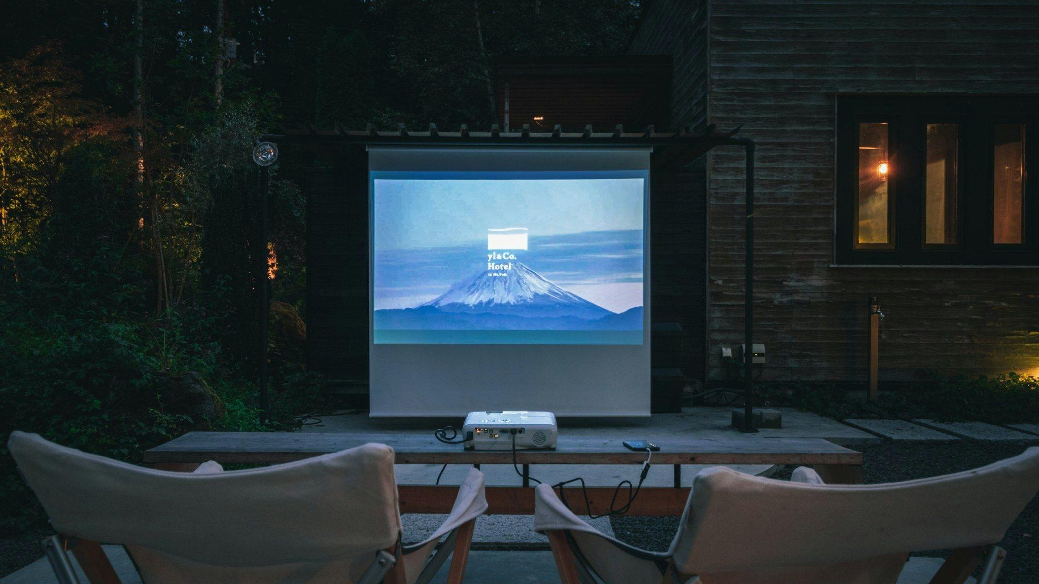 屋内・屋外プロジェクター環境完備。各種接続機器もご用意しております。 企業の皆様でのオフサイトミーティングや研修にも。