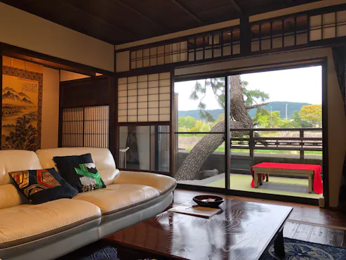 鴨川を一望できる場所にあり、明治時代に建築された歴史ある格式高い京町家です。宮大工さんにお願いし、半年かけてじっくりリノベーションいたしました。床の間が一軒に2つある贅沢な造りです。お茶屋建築の風情残る町家と、鴨川を眺むことのできるデッキがあります。 アクセスは、京都駅より徒歩12分程度。京阪七条駅まで徒歩2分の立地です。三十三間堂、智積院、養源院、渉成園、本願寺は徒歩圏内。清水寺、八坂神社、祇園、伏見稲荷、東福寺、泉涌寺などの観光地も京阪七条駅より最寄駅まで5分以内と近くアクセス抜群です。
