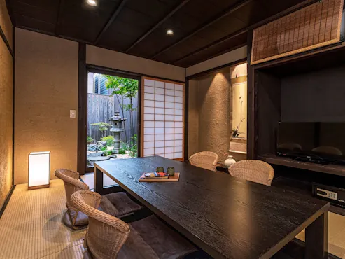 西本願寺と東本願寺の間に位置する仏具屋町、昔ながらの木造家屋が立ち並ぶこのレトロなエリアに「鈴 プレミアム 薫風」は佇んでいます。 機能性に優れたmade in Japanの家電や床暖房、レインシャワー付きの檜張り浴室、最高品質の寝具など京町家を心地よく快適に過ごせる設備が備わっております。 2つの庭を望む贅沢な空間でゆったりとした京時間をお過ごしください。