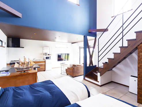愛犬とご家族が快適に楽しくお過ごしいただく為のコンセプトヴィラ。磯遊びも出来る海岸を目の前に芝生張りの専用ドッグランでワンコも遊び放題!船をモチーフにした館内もノーリードでお過ごし下さい。お食事はキッチン調理/ケータリング/BBQ(食材付プラン有)もOK。 ゆっくりと沈む夕陽を眺めながら日々の喧騒を離れ思い思いの時間をお過ごし下さい。 “小さく泊まる。ココに泊まる” お客様にとって、心に残る1ページでありますように。