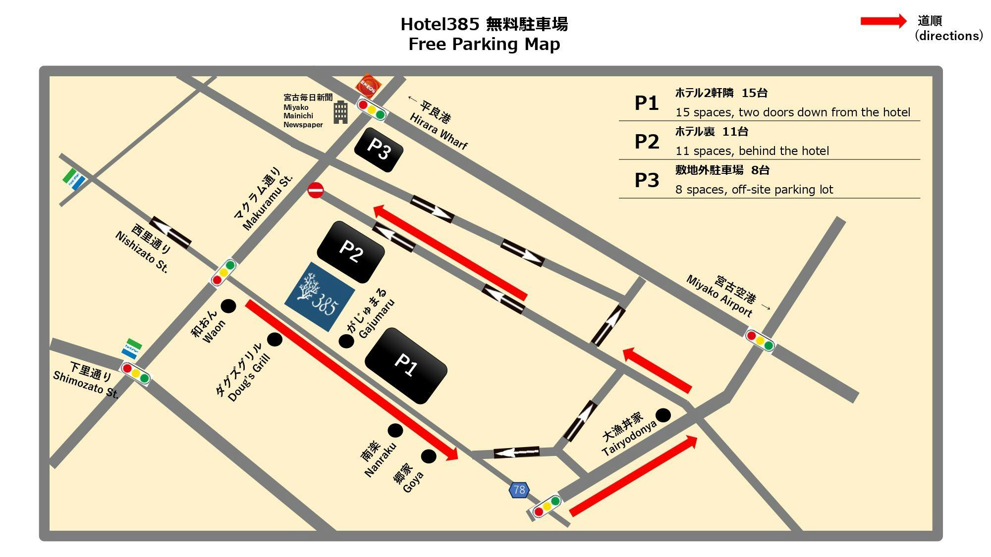 ・料金: 宿泊者無料 ・駐車場スペース: 車長 --- 車幅 --- 車高 --- ・駐車場台数: 24台 ・バレーサービス: なし ・ホテル正面駐車場(5台分) ・ホテル裏面駐車場(10台分) ・敷地外駐車場(15台分)ホテルから徒歩1分 ※いずれも「385専用駐車場」の看板が目印です。 ※ホテル裏面は一方通行になっていますので充分ご注意ください。ご不明点はホテルまでご連絡下さい。 TEL:0980-79-0998