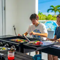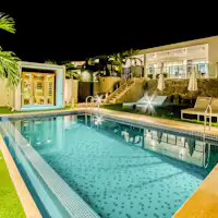 以下のような設備や特徴があります。 一棟貸切・キッチンあり・洗濯機あり・寝室複数・駐車場あり・食料品の持込可・プールあり