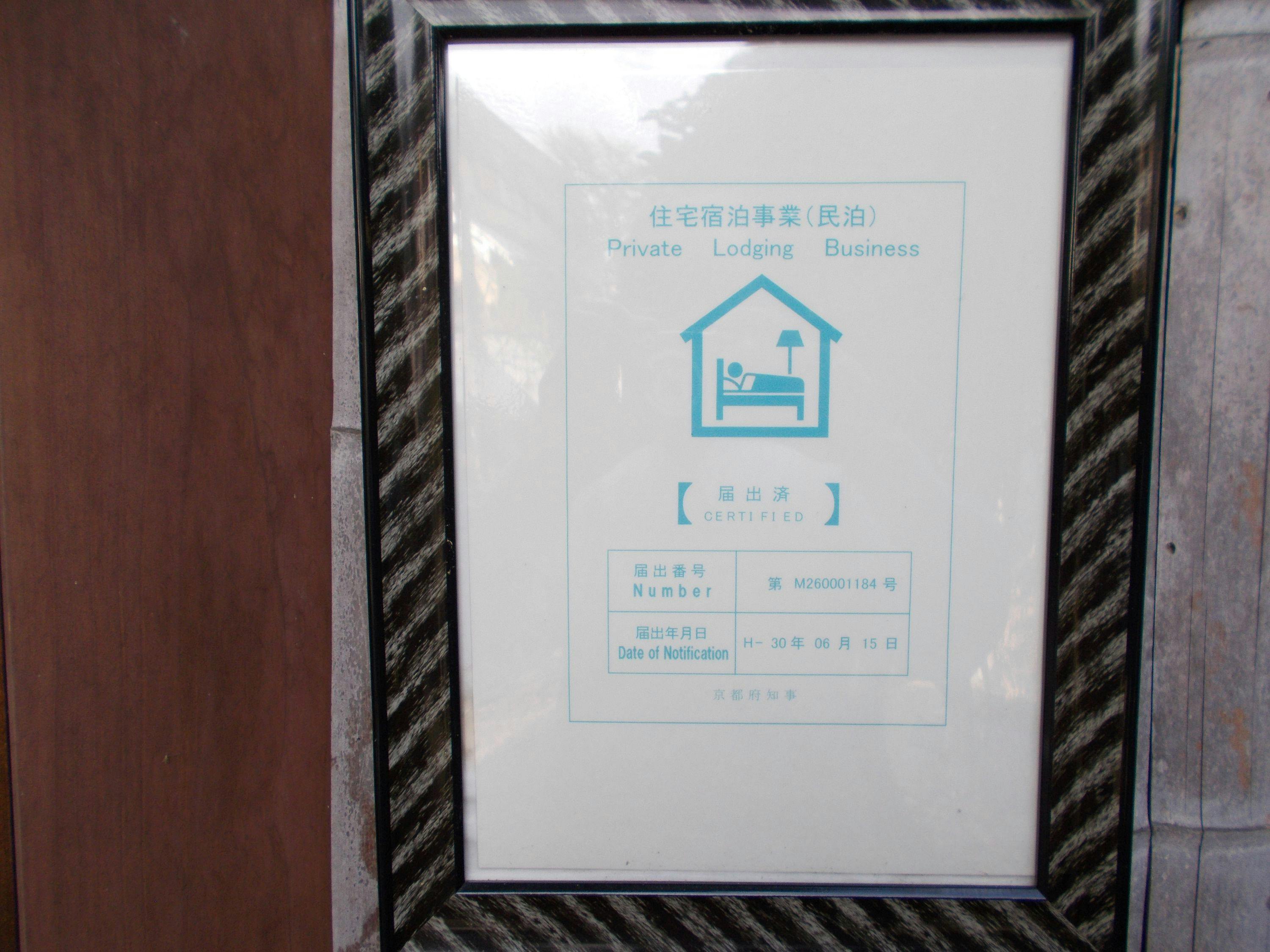 住宅宿泊事業法取得済み 届出番号:第M260001184号