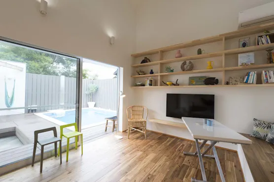 歩いて5分の海へ駆け出すのも良し、プライベート空間の中で過ごすのも良し。 sendouQは、非日常的な空間に浸る心地よさを追及しました。 夜には満点の星空があなたを包み込みます。