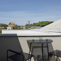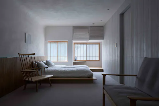 影によって気づく、光をしつらえた「滔々 二階の宿」。柔らかな感触とまどろむ光。移ろう時間とともに表情を変える白。 小さなバルコニーからは、刻々と変化する空と風、そして倉敷美観地区の豊かな営みが広がります。 日常のとなりにある静かな時間に身をゆだねて、心ゆくまでお寛ぎください。