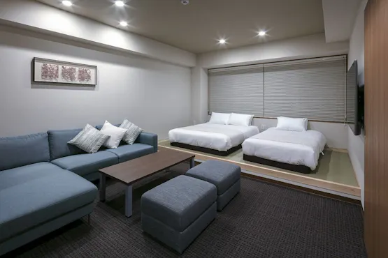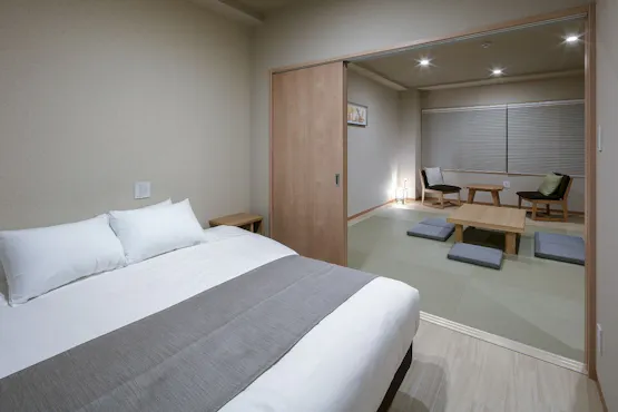 ランドーレジデンシャルホテル京都スイーツは2019年10月にグランドオープンした新築レジデンシャルホテルです。60室全室に最新家電と上質な家具をご用意しており、特別な日常の延長のようなお時間を感じていただけます。お客様にさらなる寛ぎを体験していただくべく、スパバスや露天風呂を客室にご用意いたしました。