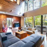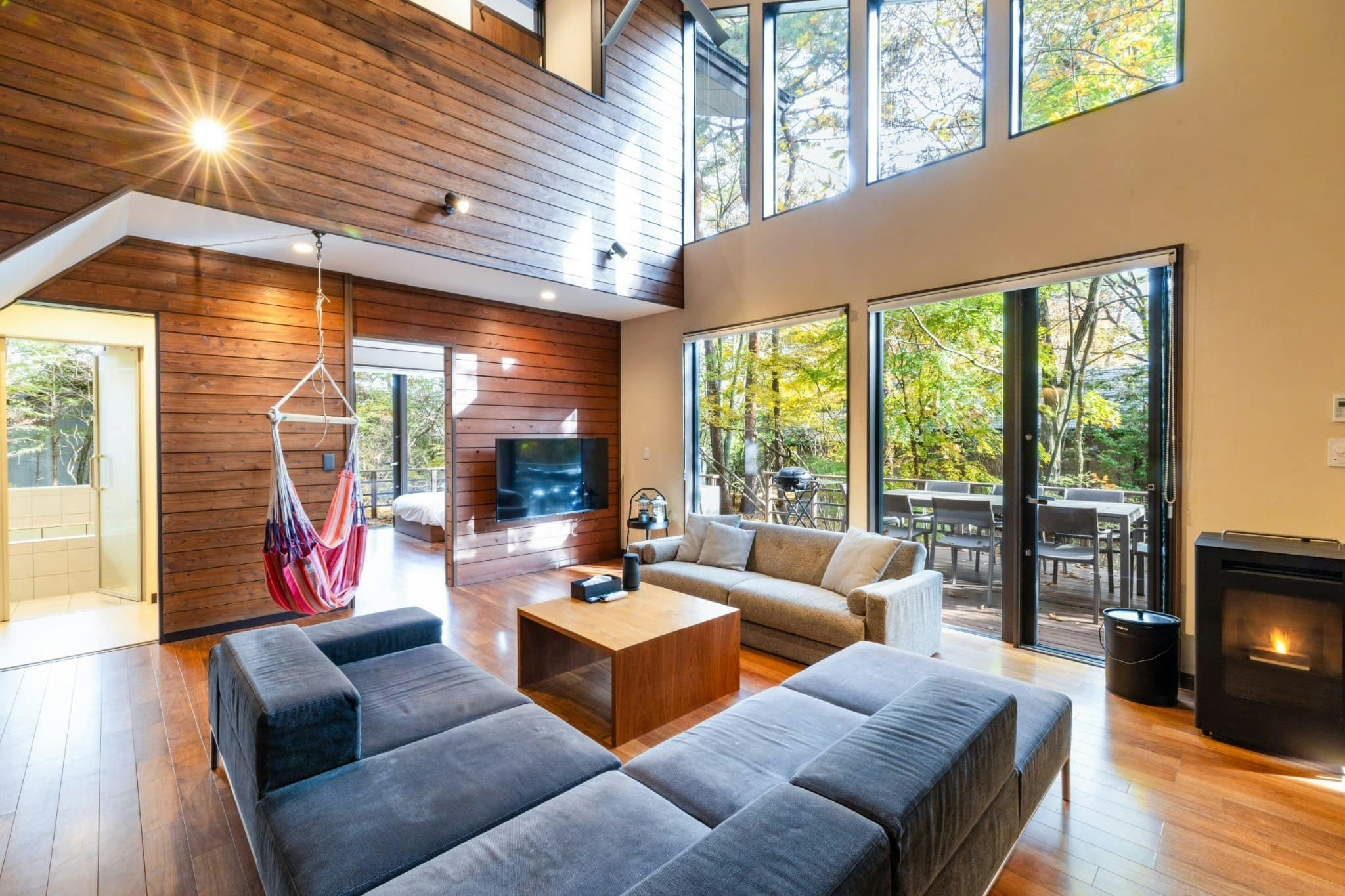 軽井沢の森にひっそりと佇む、上質な一棟。 窓の外に広がる緑や雪景色を眺めながら、心を休めるための時間が、ゆっくりと流れていきます。 夏は木漏れ日を浴びてハンモックに身をゆだね、冬はペレットストーブの炎を眺めながら、語らいや読書を愉しむ。 ウッドデッキで過ごす午後のひとときも、静寂に包まれた贅沢なひとときです。 喧騒から離れ、自然と調和しながら過ごす、凛とした休日。 大切な人と、静かな森の時間を丁寧に味わう—— そんな“大人の軽井沢”を堪能できるヴィラです。