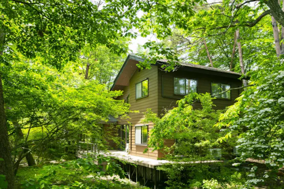 軽井沢の隠れ家を一棟貸切。1000平米の広大な自然の中でサウナと四季の移ろいを感じる
