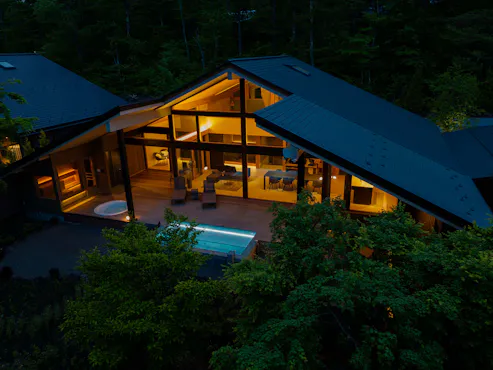スカンジナビアンデザインの洗練されたログハウスで、大切な家族や仲間と、まるで自分たちの別荘に来たかのような贅沢な時間をお過ごしいただけます。 軽井沢の自然を感じ会話を愉しむ、非日常の日常をご堪能ください