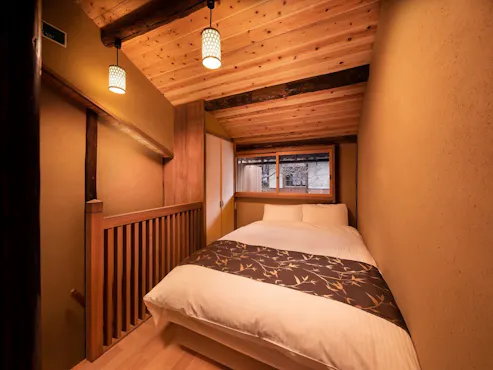 五条駅から徒歩約5分、樹齢100年余りのもみじが旅の疲れを癒す京町家