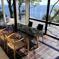 東京から一番近い秘境・伊豆半島の最南端・南伊豆の別荘。 1960年代に構想された前面・側面ガラス張りのモダニズム建築。今では建築物を建てられない国立公園の自然保護区にある非日常世界。