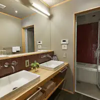 伝統的な町家に現在の快適性・利便性を加えてリノベーション。浴室など水回りはモダンに一新されています。「京の台所」と呼ばれる錦市場で新鮮な食材を買い、調理器具の揃ったIHコンロ付きのキッチンでお料理するのもおすすめです。