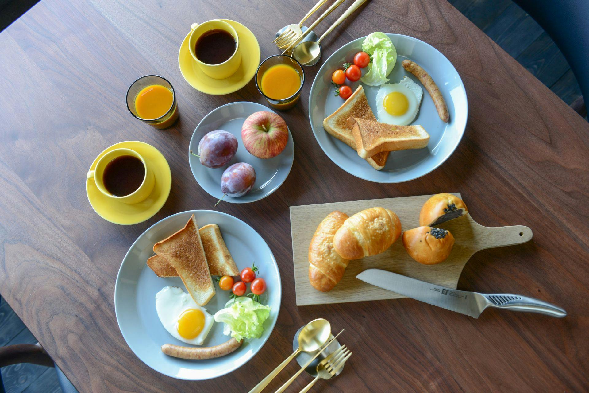 朝食食材セット:パン、卵、ウインナー、ジュースなど(季節によって内容が異なる場合があります。)