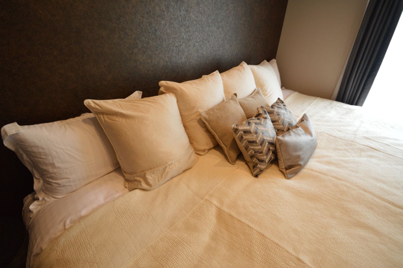 キッチンには調理器具を完備。 冷蔵庫、炊飯器、電子レンジ、電気ケトル、オーブントースター、鍋、フライパン、まな板、包丁、菜箸、お玉、食器、グラス、カトラリー、食器洗剤、スポンジ、ゴミ袋が備わっています。 また、ネスプレッソマシーンで本格的なコーヒーを味わっていただけます。 ※調味料のご用意はありません。