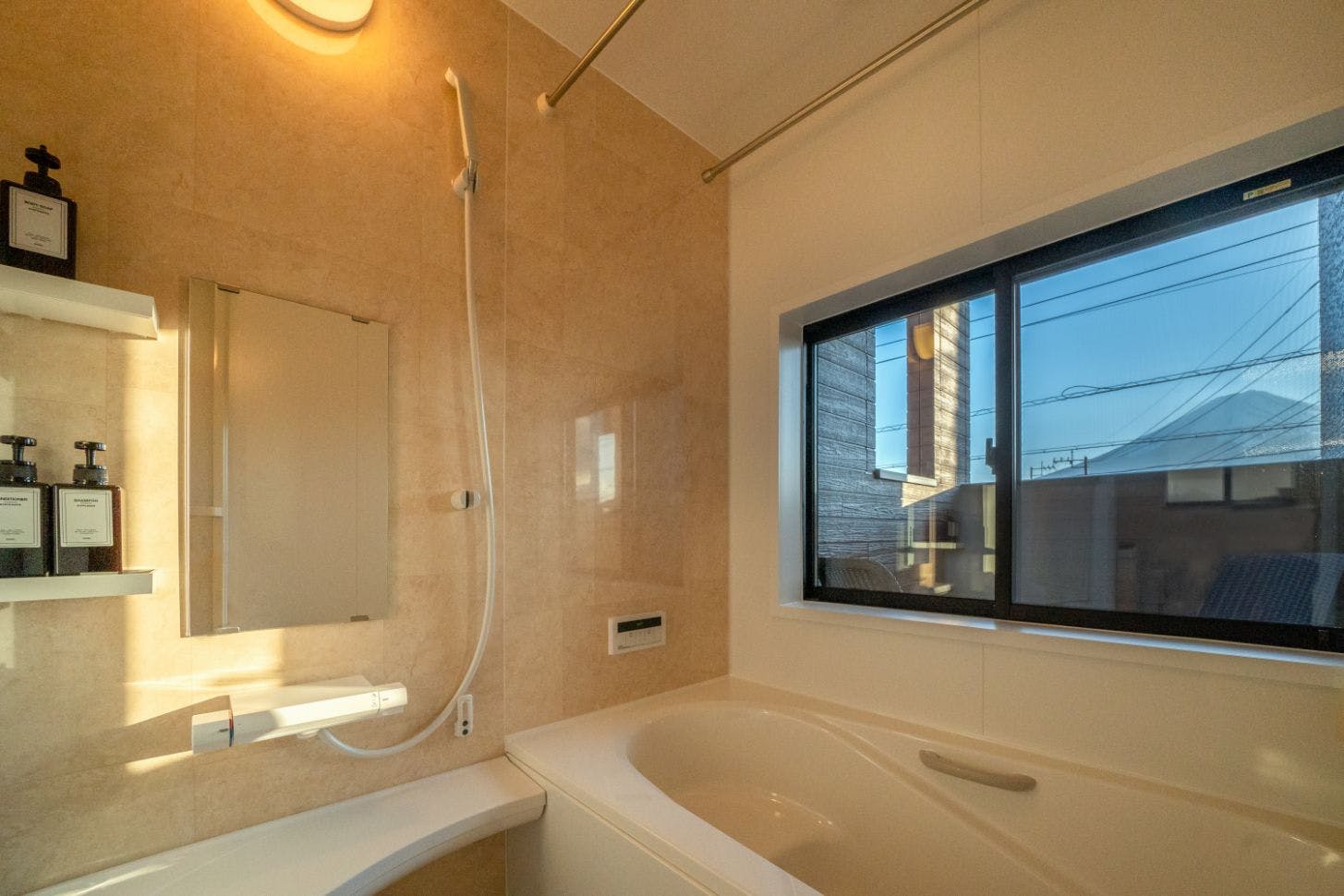 清潔さ:毎日除菌清掃を行い、部屋毎のHEPAフイルター機器はインフルエンザ等のウイルスも検出不可能レベルの清浄を行います。Villa Fuji Bon Voyage Sora & Moriは河口湖駅から徒歩4分、河口湖湖畔へも5分、コンビニ、レンタカー会社へ3分の大変便利な新築のデザイン別荘です。抜群の清潔感と一軒まるまる広いスペースを楽しめるホテルと一軒家の良さを兼ね備えたラグジュアリースイートルームです。 寒冷地用の断熱材と複層サッシ、寒冷地用冷暖房設備で、24時間快適に過ごせます。布団は最高級のものにこだわりました。 広いリビングでは、目の前に大迫力の富士山を独り占めできます。ソフアに寝ながらの目線で丸ごと富士山の感動の景観を楽しめます。暖色のシャンデリアや雰囲気あるデザイン照明にこだわったので、多人数でリラックスしながらわいわいがやがやおしゃべりと飲食を楽しむのにぴったりです。そして快適で清潔です Bluetooth(ブルートゥース)、CDオーディオ完備ですので富士山の壮大な景色に合わせてお好きな音楽をお持ちのスマートフォンやCDで楽しんだりムードの演出が可能です。