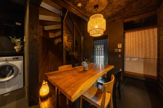 伝統的な町家に現在の快適性・利便性を加えてリノベーション。浴室など水回りはモダンに一新されています。町家近くの京都のローカル感あふれる「今熊野商店街」で食材を買い、調理器具付きのキッチンでお料理するのもおすすめです。